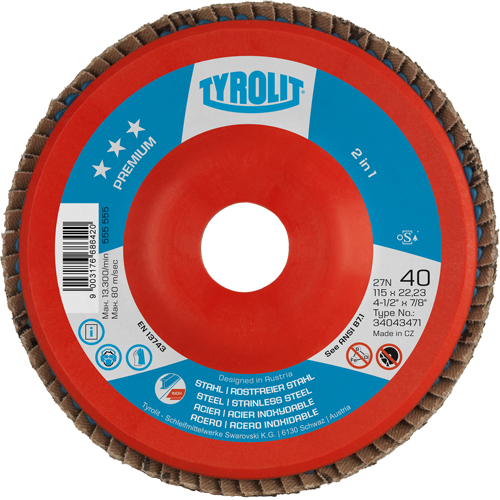 AllSteel™ Flap Disc, Grit, 40, Diameter, 4-1/2", Arbor Size, 5/8"-11, Abrasive Material, Zirconia Alumina, Max. RPM, 13300