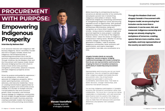 Indigenous SME Business Magazine Spotlights eSupply Canada Founder and the Waaban Chair